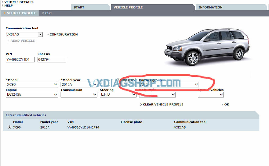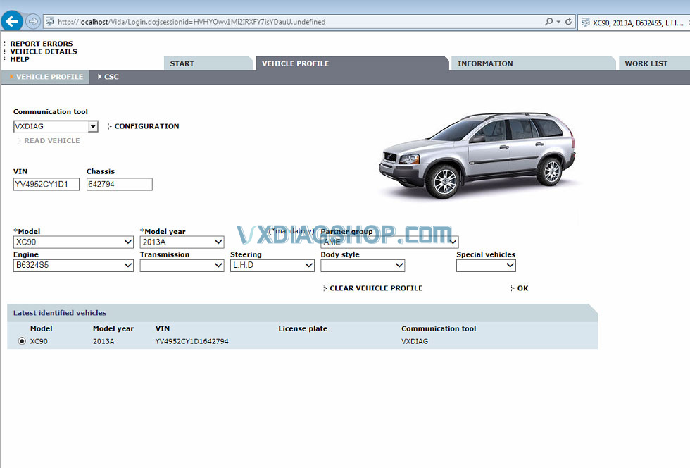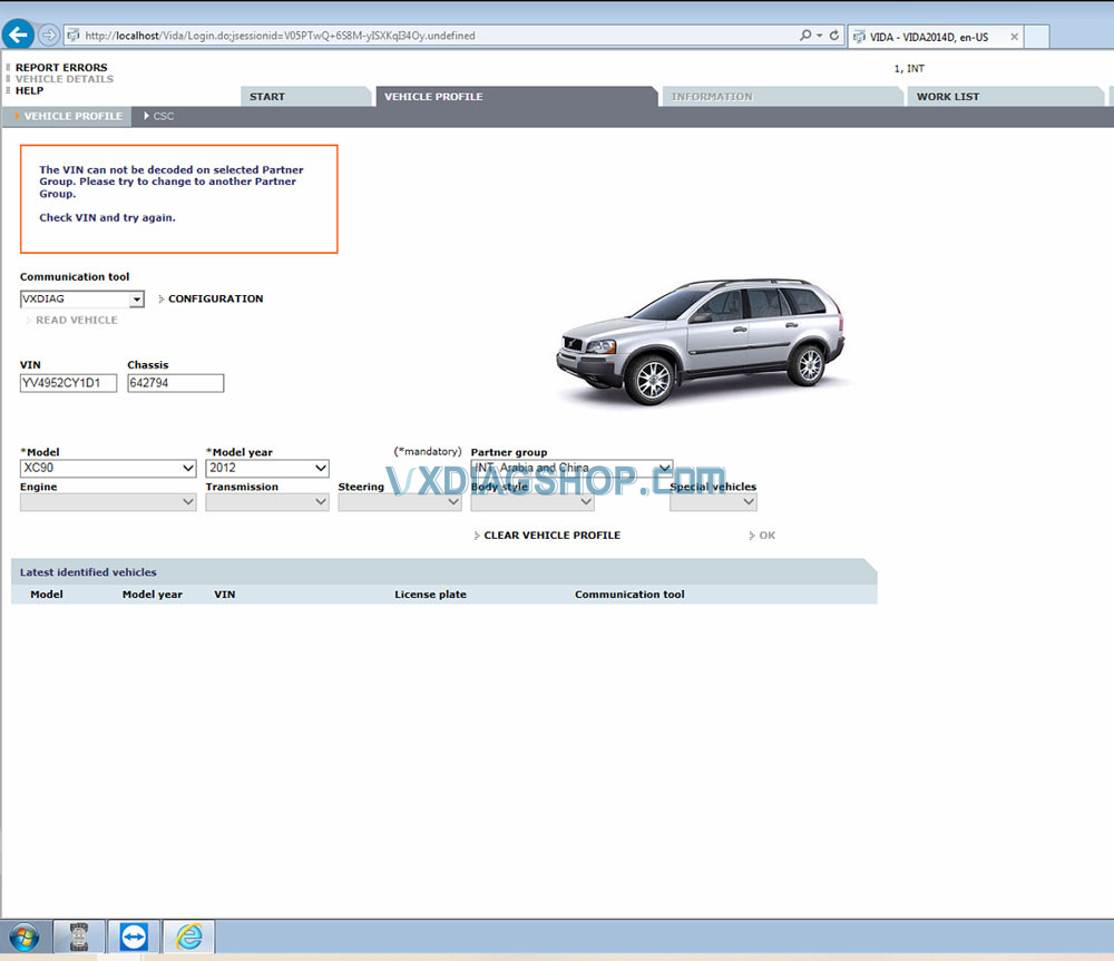 Tried to diagnose a 2012 Volvo XC90 using VXDIAG VCX SE and VIDA 2014D software.